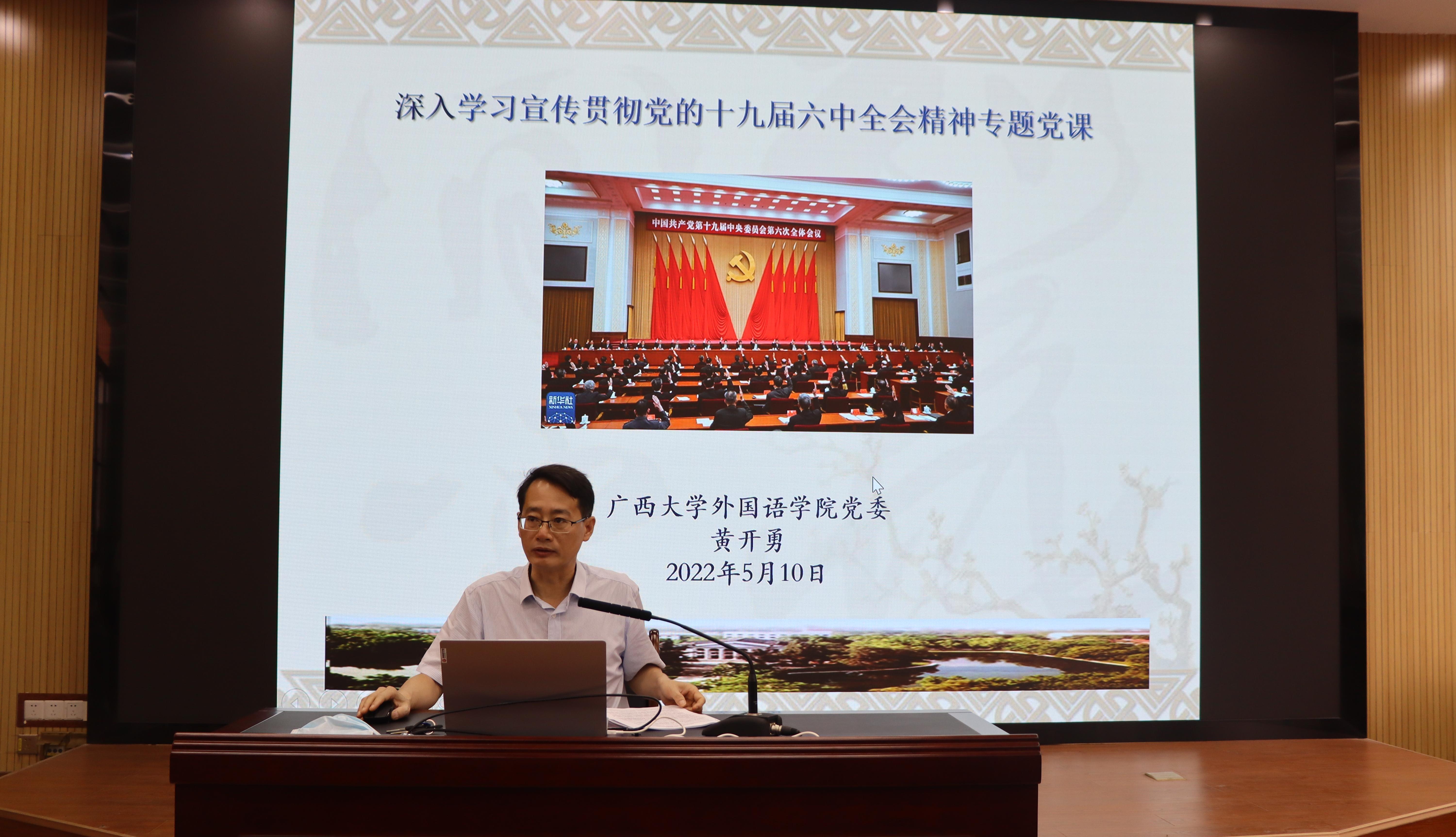 随后学院党委黄开勇书记主讲了第一次党课,带领学员们重深入学习了党的十九届六中全会精神和习近平总书记在中国人民大学考察时的重要讲话精神。