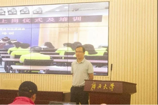 在培训直播开始前,共青团广西大学委员会谢能重书记在分会场同志愿者们强调了此次培训的重要性。他表示,志愿者培训工作开展的质量不仅关乎着广西大学的声誉,更生动诠释了何谓“文明古国,礼仪之邦”。作为东道主,我们要友善热情地招待外国友人,积极做好志愿者工作。