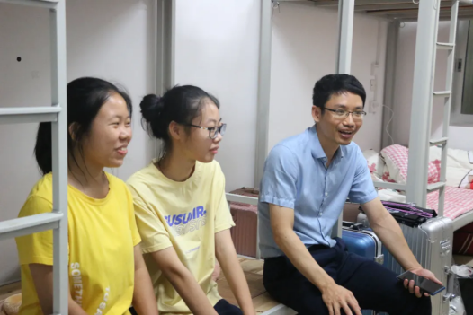 (外国语学院党委副书记肖克宁老师在新生宿舍看望新同学)