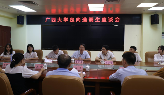 2022年7月13日上午,外国语学院暑期社会实践团在大化瑶族自治县举行座谈会,走访我校在该县工作的定向选调生。外国语学院党委书记黄开勇、大化瑶族自治县县委组织部部长张飞、广西大学外国语学院党委副书记肖克宁、团委书记陈星宇,在大化县参加工作的广西大学定向选调生梁珍、罗丽娜、邓在斌三位定向选调生,以及外国语学院暑期实践团全体成员参加座谈。