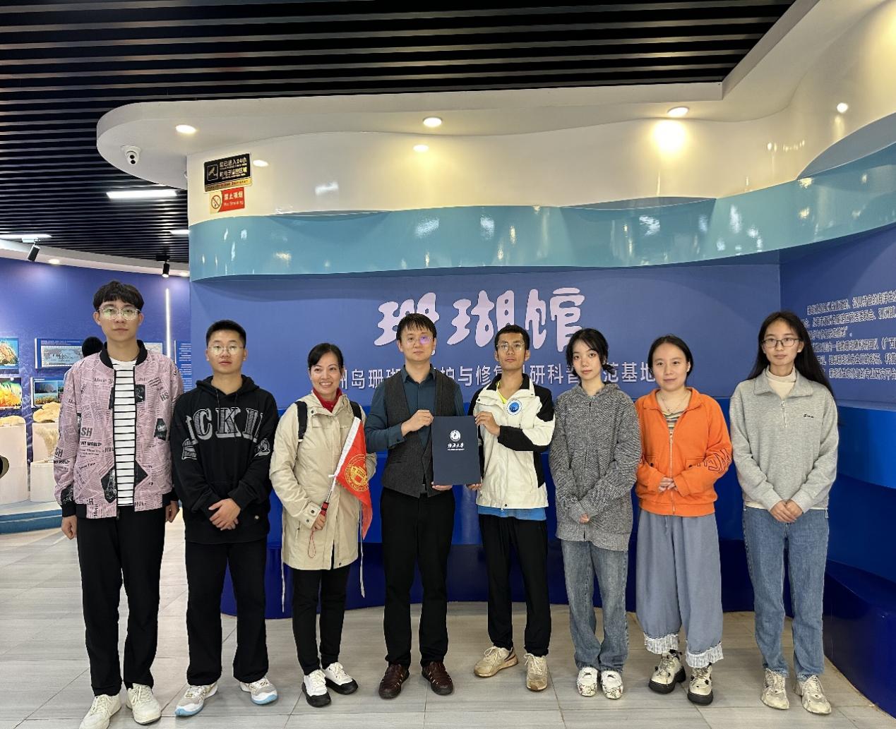参观结束后,外国语学院团委书记陈星宇老师,汇学班班主任苏文采老师代表广西大学外国语学院,向涠洲岛珊瑚礁保护与修复科研科普示范基地赠送了珊瑚馆科普讲解稿的英文译本。该译本是在班主任苏文采老师的悉心指导和严格审校之下,由汇学班学员们反复打磨而成,另配有学员录制的英文版讲解音频。珊瑚馆作为宣传科普珊瑚知识的前哨阵地,吸引着大量来自海内外的游客,馆内的许多展板、标识等均为中英双语。讲解稿的翻译作为本次语言实习的重要成果之一,让汇学班学员得以运用所学专业,让理论与实践相接轨,将知识服务于社会,为广西的海洋保护科普宣传工作尽自己的一份力。