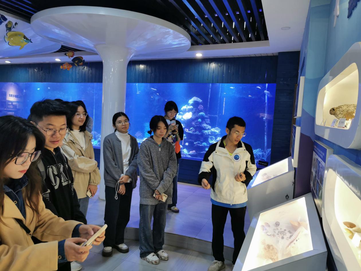 交接仪式后,外国语学院团委书记陈星宇老师带领汇学班语言实习团队一起学习了习近平生态文明思想。陈星宇老师结合珊瑚馆关于中国海洋环境现状的讲解,对习近平生态文明思想的具体内容进行了分析解读。他提到,习近平生生态文明思想对推动中国式现代化具有重大意义,要进一步深入学习贯彻习近平生生态文明思想,呼吁同学们把涠洲岛语言实习活动中学到的内容落到实处,在日常生活中传播与践行生态文明建设的理念。