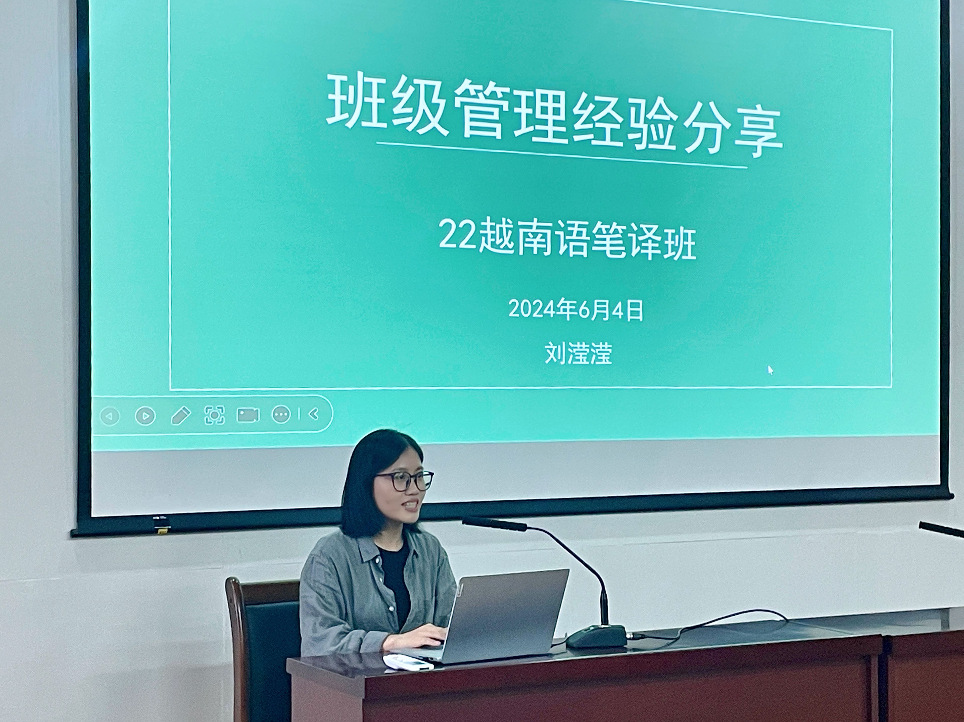 (2022级越南语笔译班班长刘滢滢进行分享)