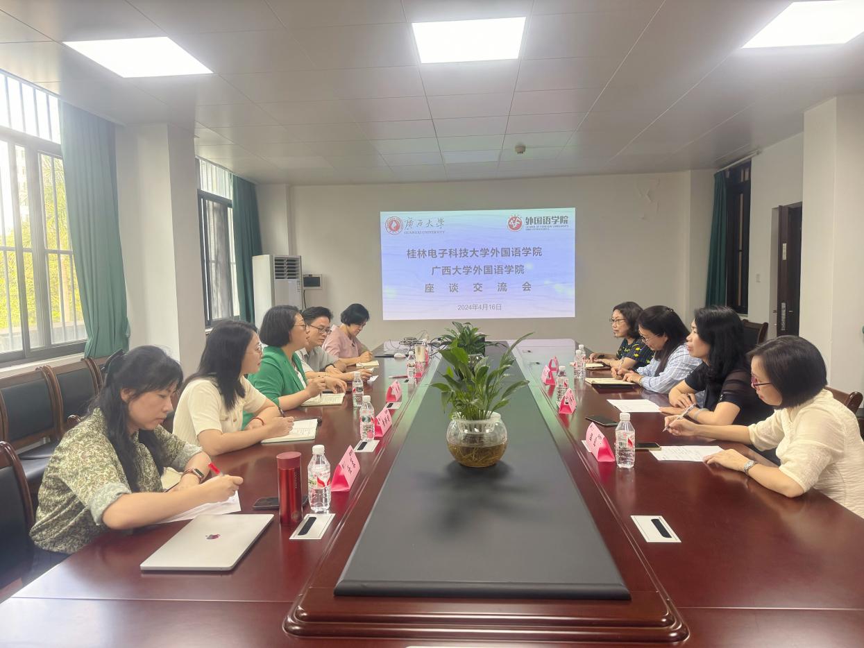 2024年4月16日下午,桂林电子科技大学外国语学院大学英语系骨干教师一行到我院调研交流,我院大学外语系负责人及相关教师参加座谈交流会。