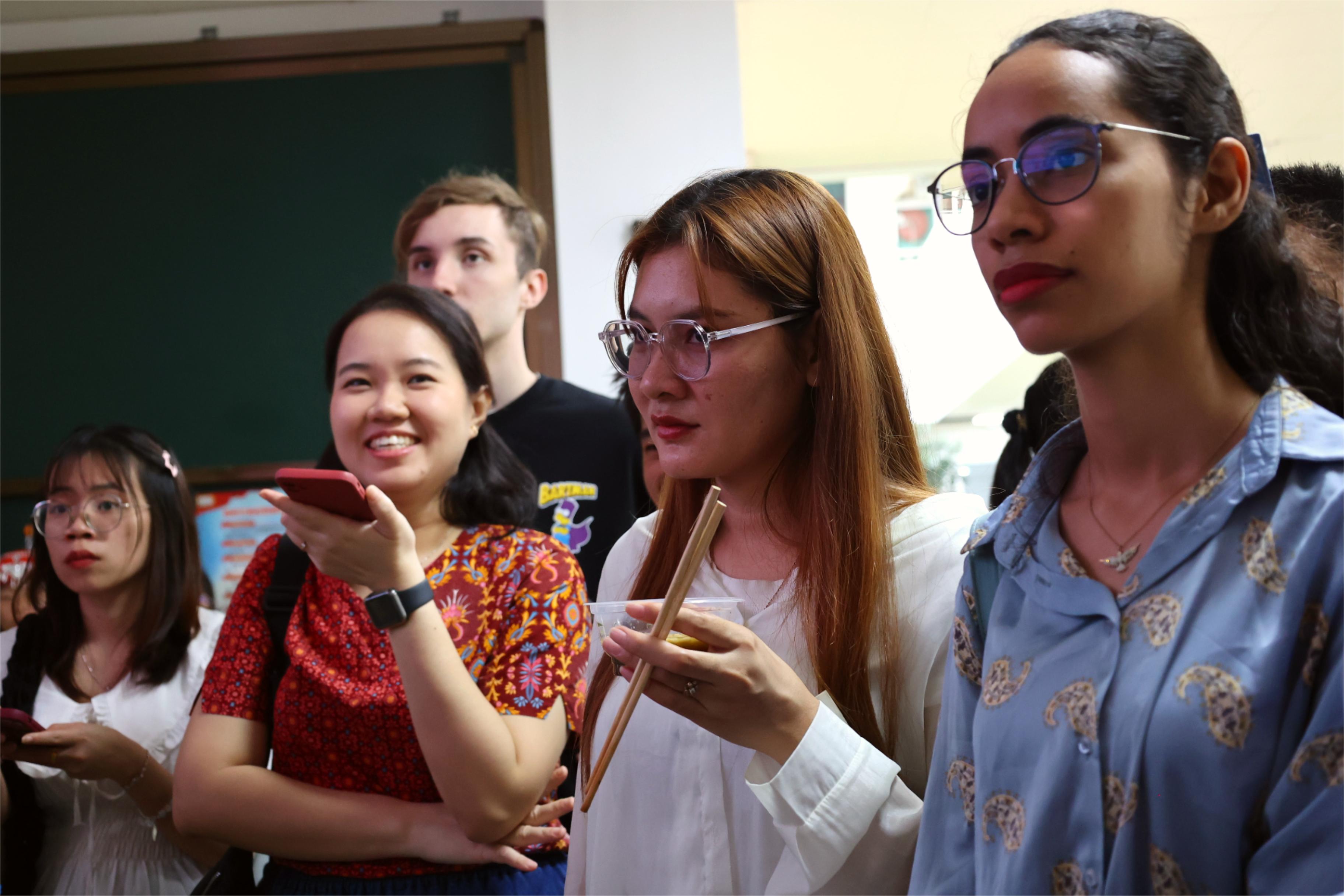 研会主席团执行主席周洋舟同学表示,今天是他第一次全程亲身体验油茶制作,感到非常开心。他还谈到,外国语学院近年来十分重视开展与传统文化相关的活动。从上个月的中医体验,到这次的三月三活动,外国语学院研究生会将一直致力于中华传统文化的传承、发扬与对外传播,主动承担起增进民族团结,促进中外交往,讲好中华民族故事的使命。