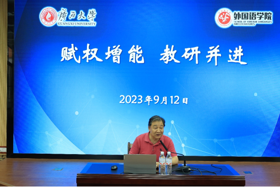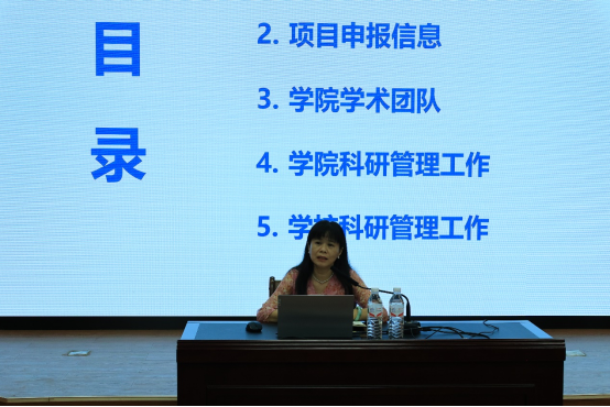学院科研副院长梁燕华教授通报了罗院长获得的国家社科重点项目,突破广西外语学科在国家社科基金重点项目上零的突破。同时,梁燕华指出申报项目的时间节点和具体流程,希望全体教师兼顾教学与科研,为学院科研工作的长足发展作出贡献。