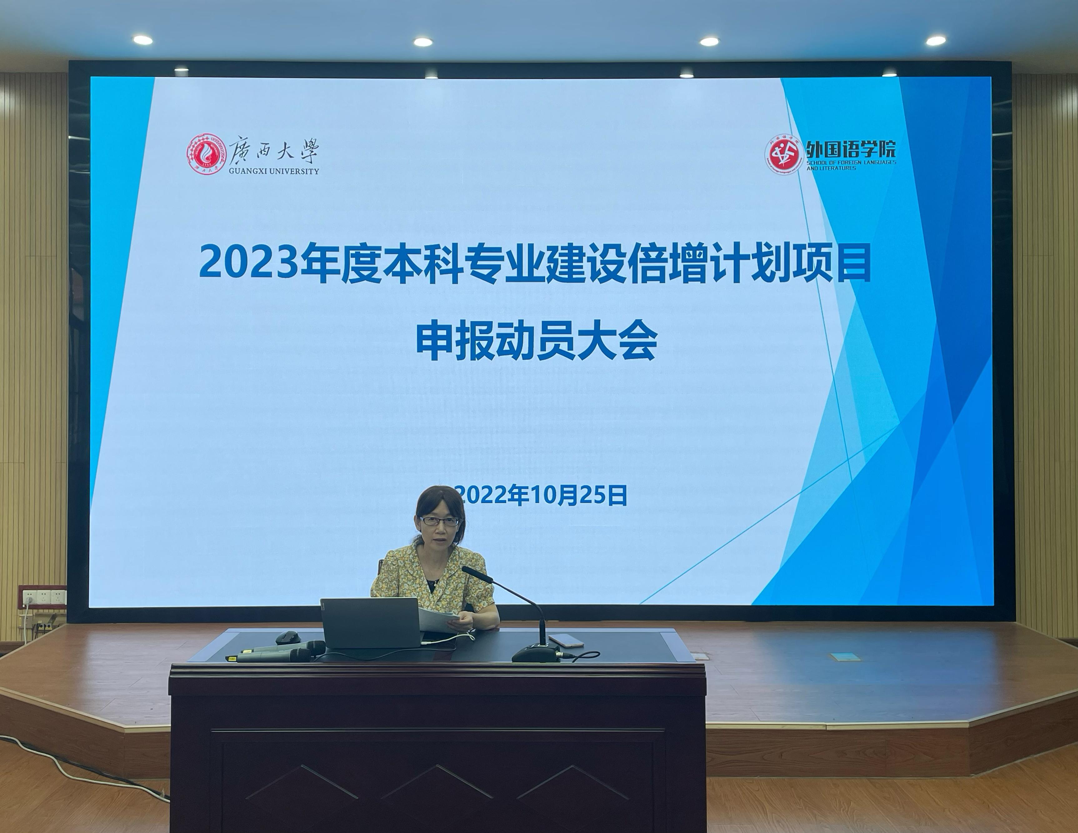 10月25日下午,学院在融通报告厅召开了2023年度本科专业建设倍增计划项目申报动员大会。学院具有副高级以上职称专任教师和博士专任教师(含在读博士)参加了会议。会议由教学副院长叶萍教授主持。