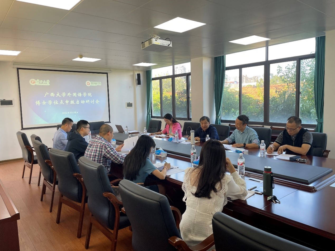 10月10日下午,外国语学院“博士学位点申报启动研讨会”在邵逸夫楼301召开,院长罗选民、研究生副院长白佳芳、科研副院长梁燕华,学科带头人严辰松、祁广谋、邓联健等专家教授以及青年骨干教师出席本次研讨会。会议由白佳芳副院长主持。