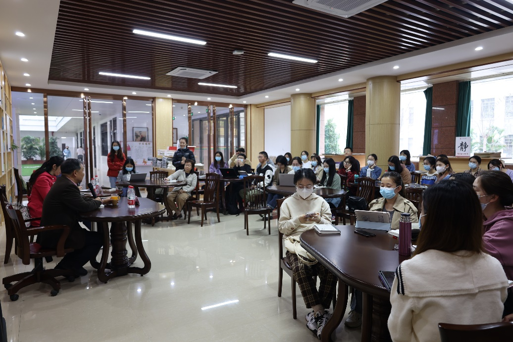 3月29日下午,“好读书”沙龙系列之“翻译思想启蒙——《文学通诠》读书交流分享会”在广西大学外国语学院阅览室举行。此次读书沙龙由外国语学院院长罗选民教授主讲,外国语学院副院长白佳芳副教授、21级外国语言文学翻译学方向的唐诗婷同学共同主持,学院众多师生到场聆听。