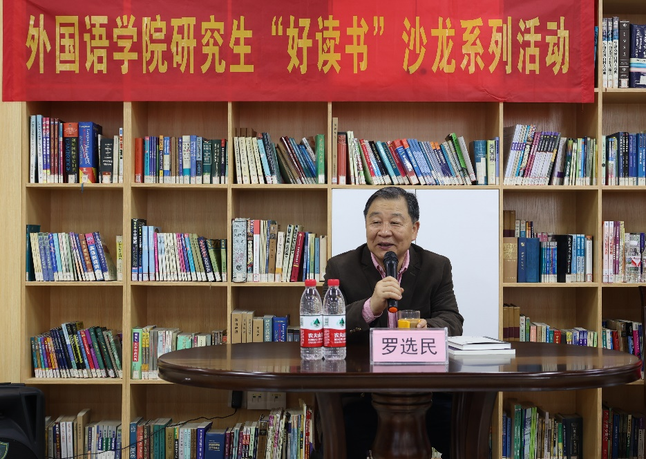 (图为罗选民教授进行读书分享)