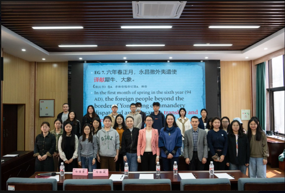 在讲座中,龙教授以香港中文大学汉达文库数据库为研究基础,对175篇古代文献进行了系统梳理和定量分析。她指出,“译”主要用于描述中原王朝对外探索,而“重译”则集中出现在外国使者来华朝贡的叙事中。这一鲜明的使用差异不仅体现了古代语言使用的系统性和规律性,更反映出古代译者对“译”与“重译”的选用兼具灵活性与目的性。