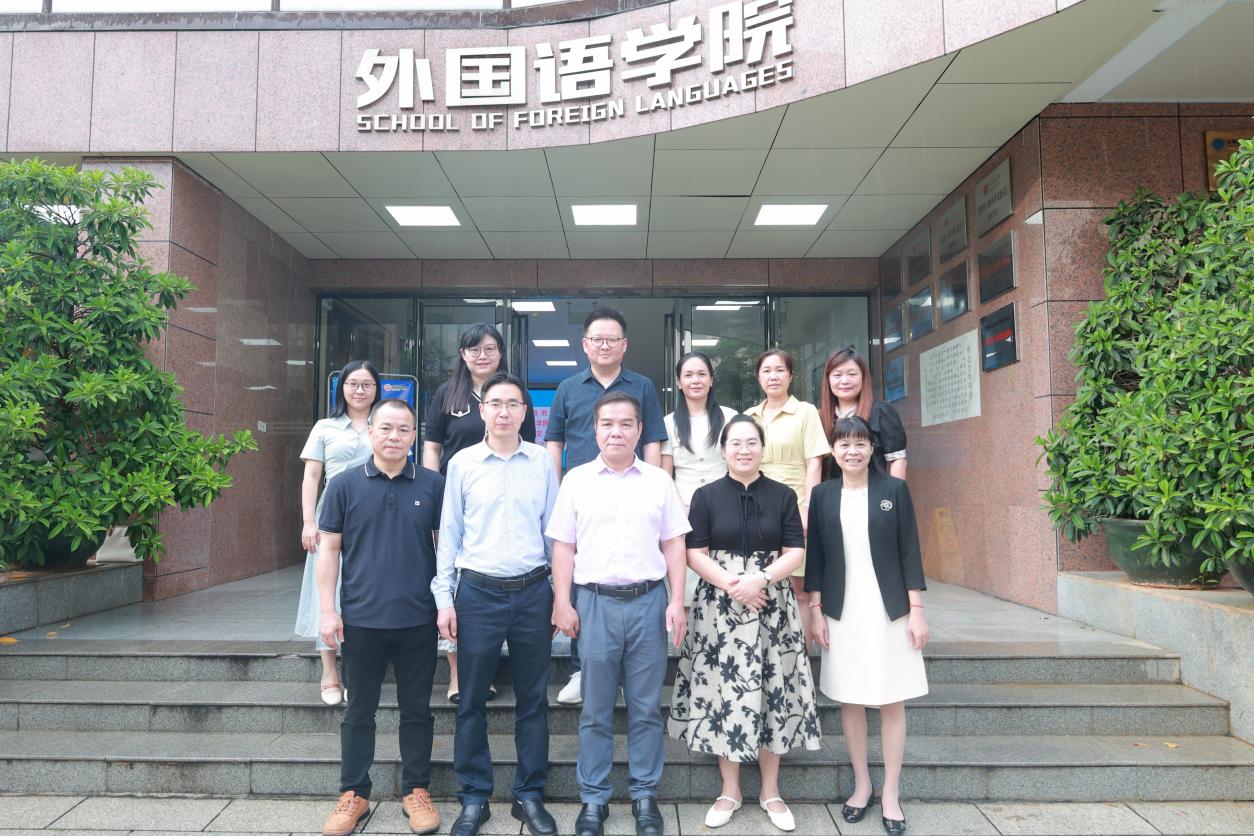 6月11日下午,广西民族师范学院外国语学院覃承华院长一行5人到我院调研交流,学院党委书记莫柏林、院长邓联健、副院长姜文君、副院长梁燕华、翻译系主任安文婧、东南亚语系主任郑海宁、越南语专任教师黄晓龙参加会见和调研座谈。