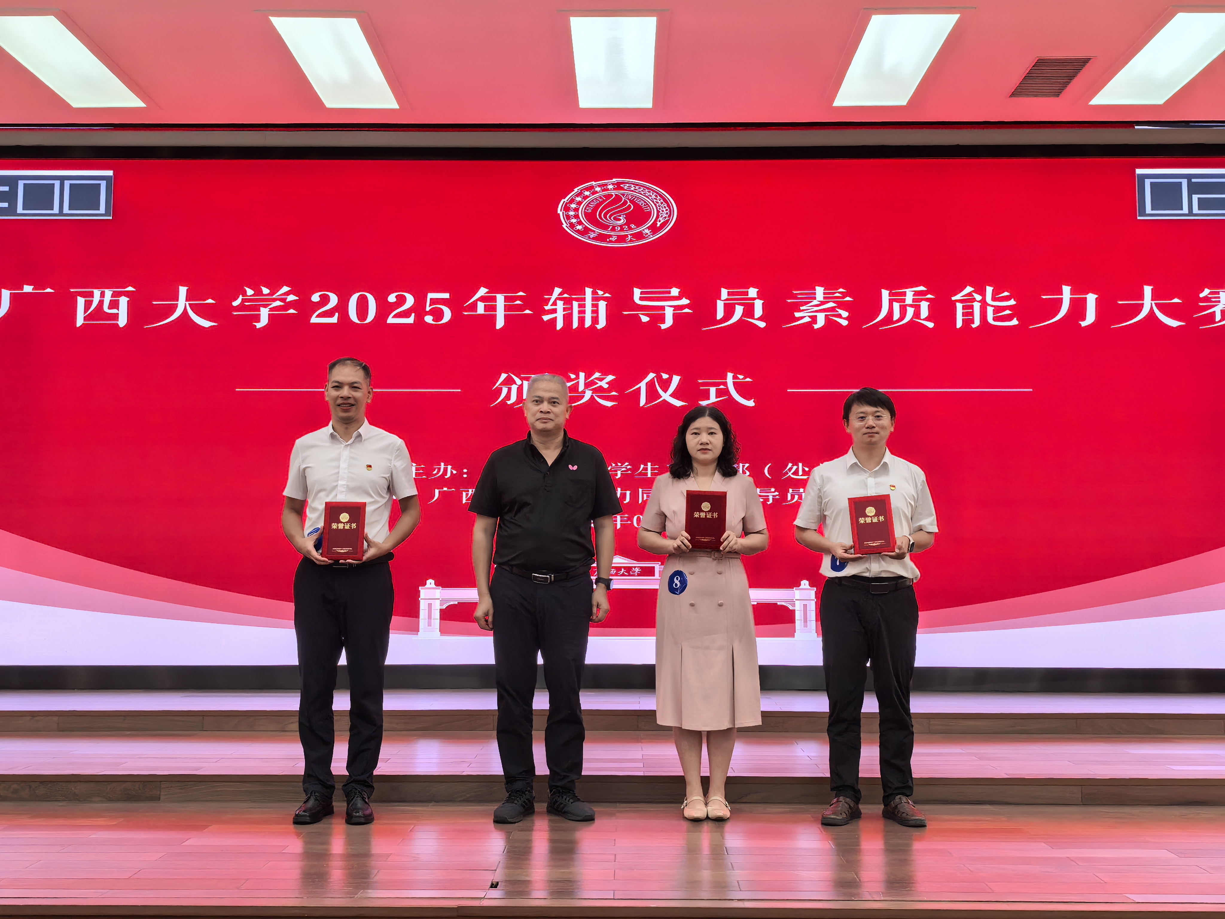 在6月5日举行的广西大学2025年辅导员素质能力大赛决赛中,我院辅导员再创佳绩,充分展现了外国语学院学生工作队伍的专业素养与育人风采。经过基础知识笔试、学情分析报告、案例研讨等层层选拔,我院两位辅导员脱颖而出,双双挺进决赛,并取得优异成绩。