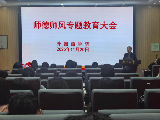 11月20日下午,我院在融通报告厅召开师德师风专题教育大会,学院党委书记莫柏林主持会议并讲话,全体教职工参会。