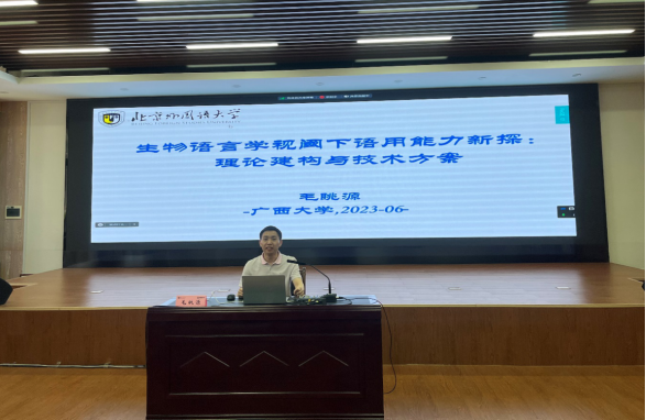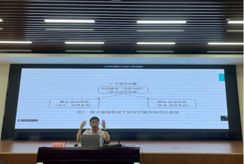 毛教授先介绍了广义和狭义的生物语言学概念,开启了讲座。接着毛教授阐述了语言能力研究的深入推进迫使学界积极讨论与之紧密相关的语用能力实现机制、语用习得与测试等热点问题。毛教授指出语言“一体两面(思维与交际)”的基本特点重构“语用能力整合说”,包含分别实现两类属性的内、外语用能力。前者依靠广义语言官能内部各语言子模块之间的互动、及其在真实或想象的外部语境中互动协作,抽象地思考语言本身以及其他问题;后者利用广义语言官能内部各语言子模块与外部语境的互动,基于各语言子模块协作输出的结构表征,实现语境化社会交际。依此论证外语教学与对外汉语教学中可共享的语用能力共通框架的可行性。毛教授展望了未来生物语言学与社会生活创新结合的美好愿景,希望同学们为创造美好生活继续努力奋斗。
