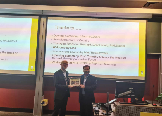罗选民院长向新南威尔士大学人文学院院长赠送广西大学铂金画