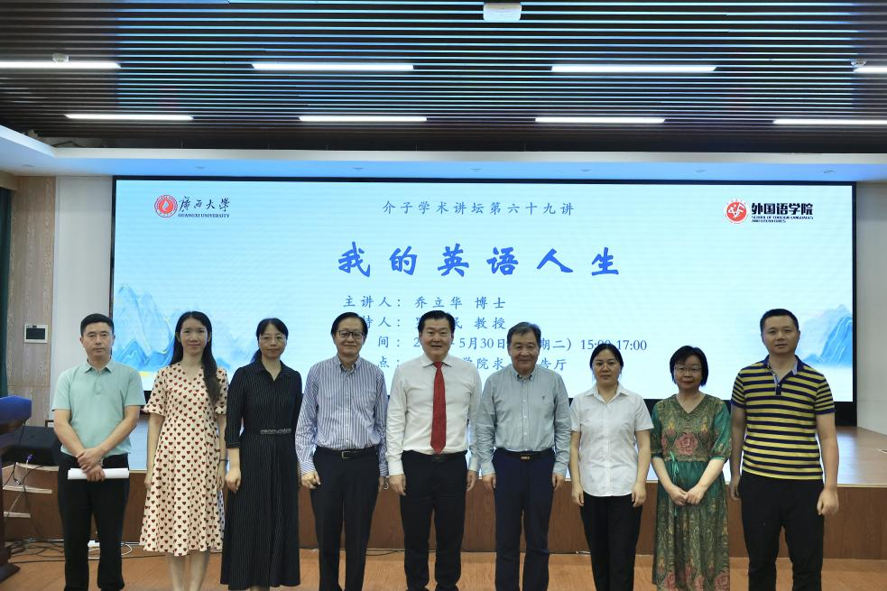 2023年5月30日下午,介子学术讲坛第六十九讲在外国语学院求是报告厅顺利举办。我院邀请到了美国著名爱国侨领乔立华博士进行题为“我的英语人生”的讲座,本次讲座由院长罗选民教授主持,吸引了众多师生前来聆听。