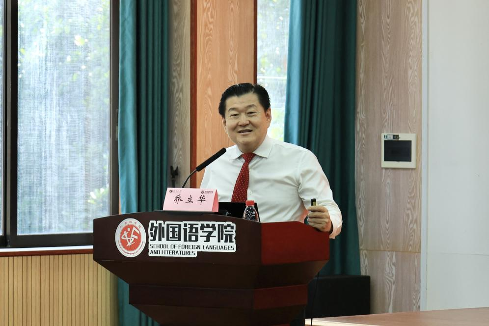 讲座伊始,乔立华博士分享了自己学习英语的契机。青年时期的乔立华在逆境中奋斗,他曾是生产队长,自学了高考所有科目,恢复高考后,他决定把握住机会。因为父亲的一句“中国缺外交官”,乔立华毅然报考北京外国语学院。尽管当时不具备充足的学习条件,他还是克服重重困难,成为了广西状元。乔立华博士认为人生中最重要的是态度,困难来临时不抱怨,要积极面对。他还强调,年轻人不应消极懒惰,应勇敢享受一切境遇,不要轻言放弃,尝试了就是一种成功。