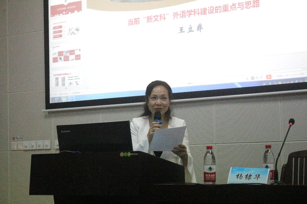 10月16日下午,外国语学院介子学术讲坛第三十四讲于第六教学楼第一阶梯教室圆满举办。北京语言大学高级翻译学院博士生导师、国际语言服务研究院院长王立非教授,应邀为我院师生带来了题为“当前‘新文科’外语学科建设的重点与思路”的精彩讲座。本次讲座由外国语学院杨棣华教授主持。