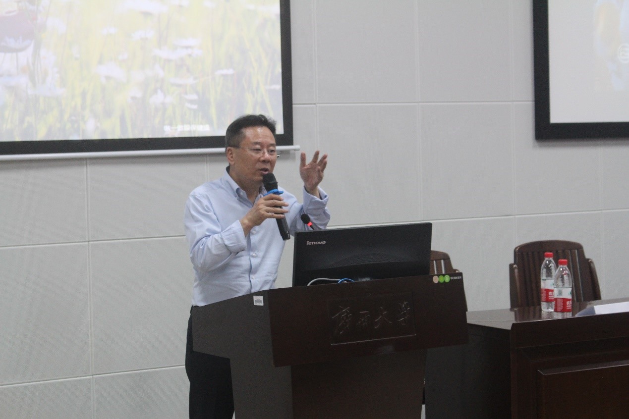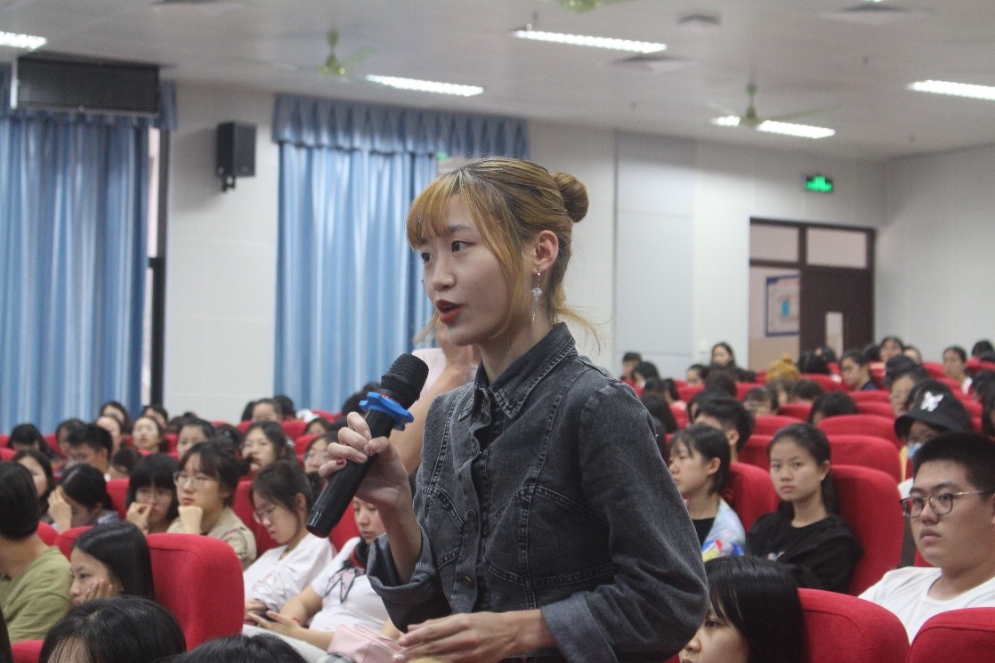 在讲座尾声的互动环节中,在场师生认真思考总结,并积极踊跃地提出自己的见解与疑问,希望能够得到王教授的指点。针对“外语专业人才在国内是否已经饱和”的问题,王立非教授以日语为例,分析了中日关系从“一带一路”建设之初到目前日益友好的趋势,据此得出对相关外语人才的需求将继续保持的结论。同时,王教授还指出,具有跨专业基础的综合性外语人才会更加稀缺。此外,就“语言服务方向如何在大学学科建设中具体落实”的疑问,王教授认为,理工类大学可以加强语言服务与技术结合。而广西大学作为综合性大学,不仅具有文史哲等人文学科的优势,同时具有位于广西壮族自治区的地理优势,可作为弘扬民族文化的实践基地,并且在与东盟的交流和联系中,获取语言服务的宝贵经验。