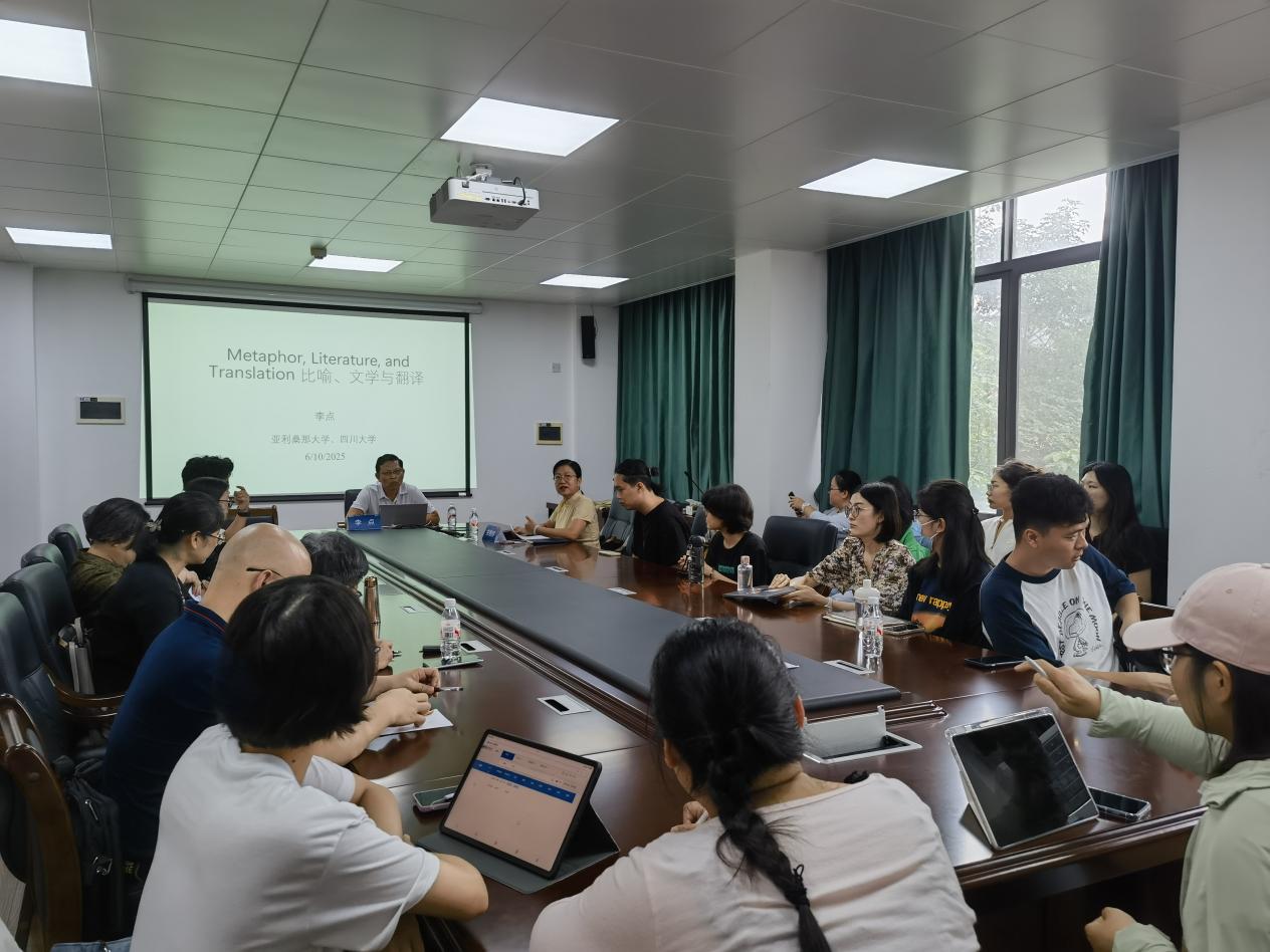 6月10日下午,学院在301会议室举办介子学术讲坛第九十五讲。美国亚利桑那大学东亚系李点教应邀做题为“比喻、文学与翻译”的讲座。关熔珍教授主持讲座。