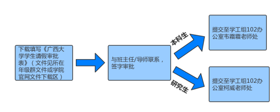 下载填写《广西大学普通本科生休学表》,准备相应佐证材料(材料要求附下)→提交至学院118教学办俸雯汐老师处办理相关手续。完整办理流程附下