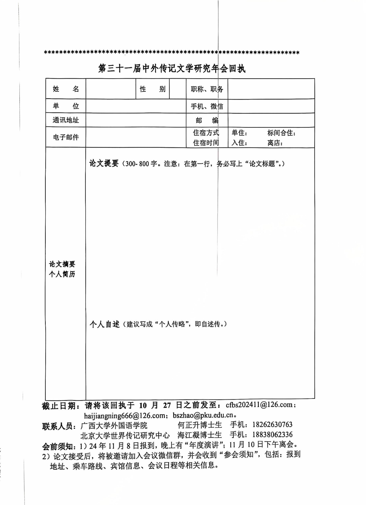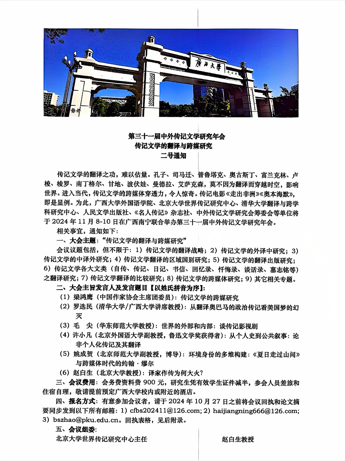 第三十一届中外传记文学研究年会传记文学的翻译与跨媒研究二号通知