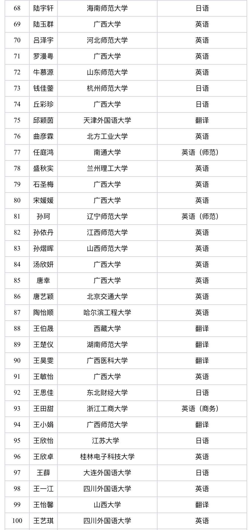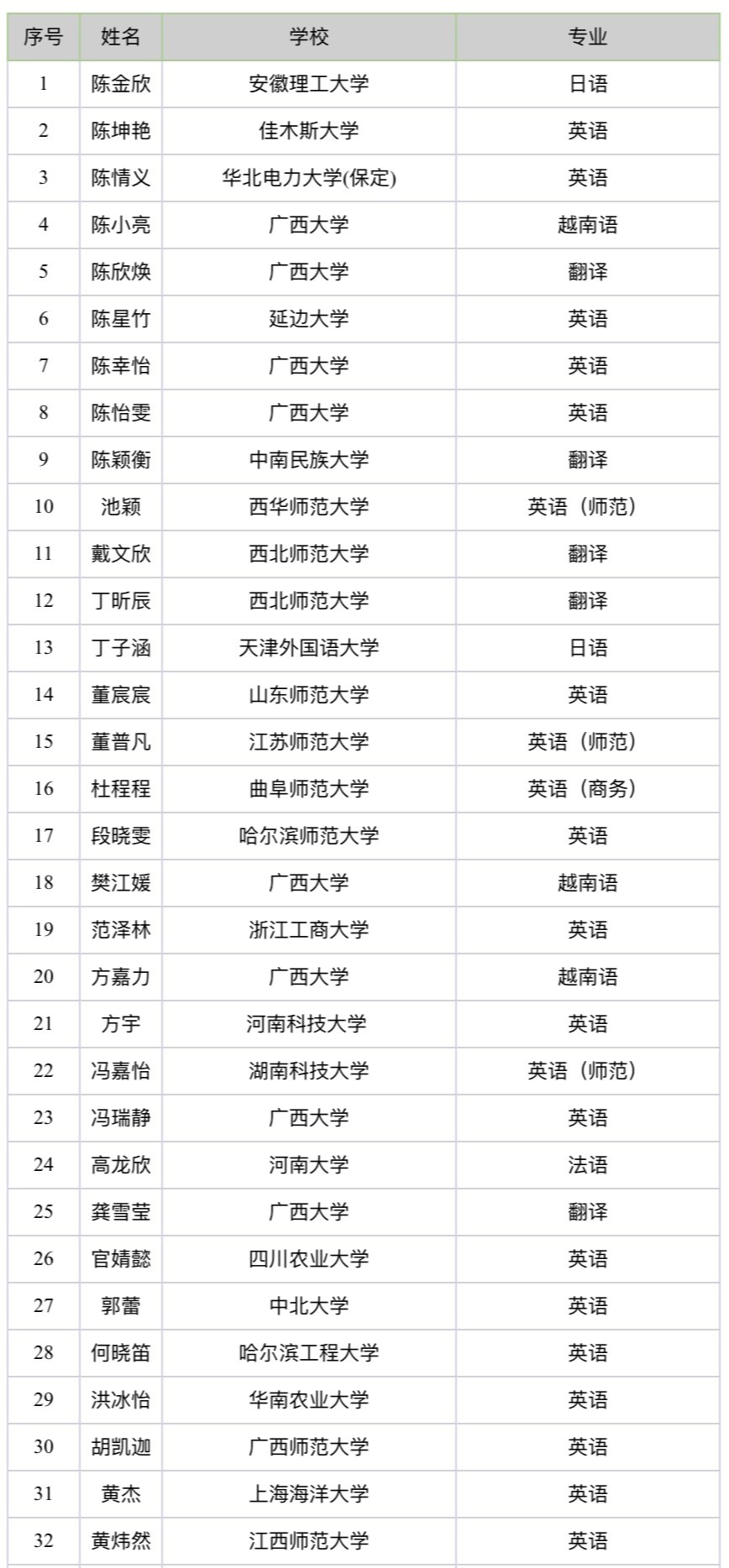 广西大学外国语学院2022年“优秀大学生夏令营”活动材料审核及营员遴选阶段已完成,现将夏令营录取名单公示如下: