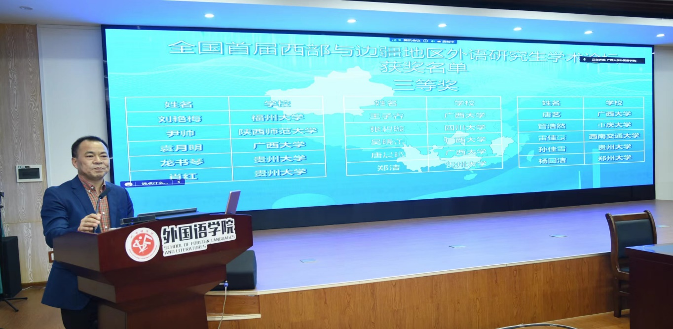(广西大学外国语学院邓联健教授 宣读论文获奖名单)