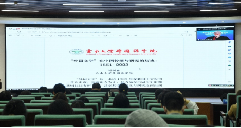 由南昌大学陈夜雨教授主持,云南大学刘树森教授就“‘外国文学’在中国传播与研究的历史:1851-2023”发表主旨演讲。刘教授系统梳理“外国文学”这个概念在我国传播与研究的历史,引用《感时》诗中的“五月花”说明“外国文学”在译入过程中出现的误读误用现象,并深入探讨不同时期阅读大众和学者对“外国文学”的认知特征。