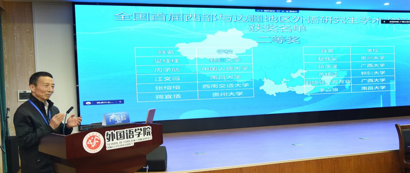 (广西大学外国语学院严辰松教授 宣读论文获奖名单)