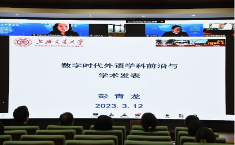 由新疆大学麦丽哈巴·奥兰教授主持,国务院学位委员会外国语言文学学科评议组成员、上海交通大学特聘教授彭青龙教授作“数字时代外语学科前沿与学术发表”主旨发言。彭教授认为,数字时代的外语学科面临转型发展的机遇和挑战,科学研究的内容和方式都有所变化。他从前沿问题出发,为同学们讲述科学研究和学术发表的路径方法。