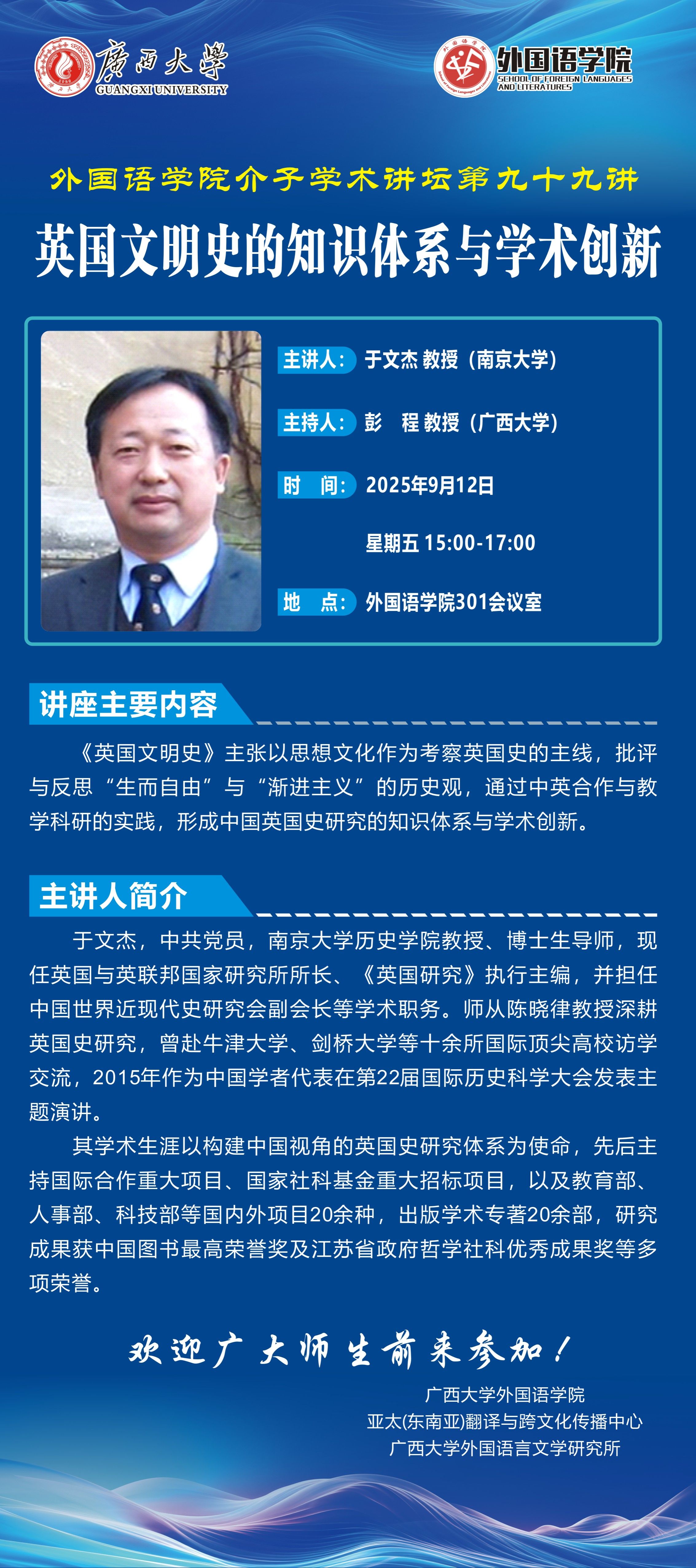 上一篇:学术报告:数智时代翻译传播学跨学科方向研究生培养的理论与实践