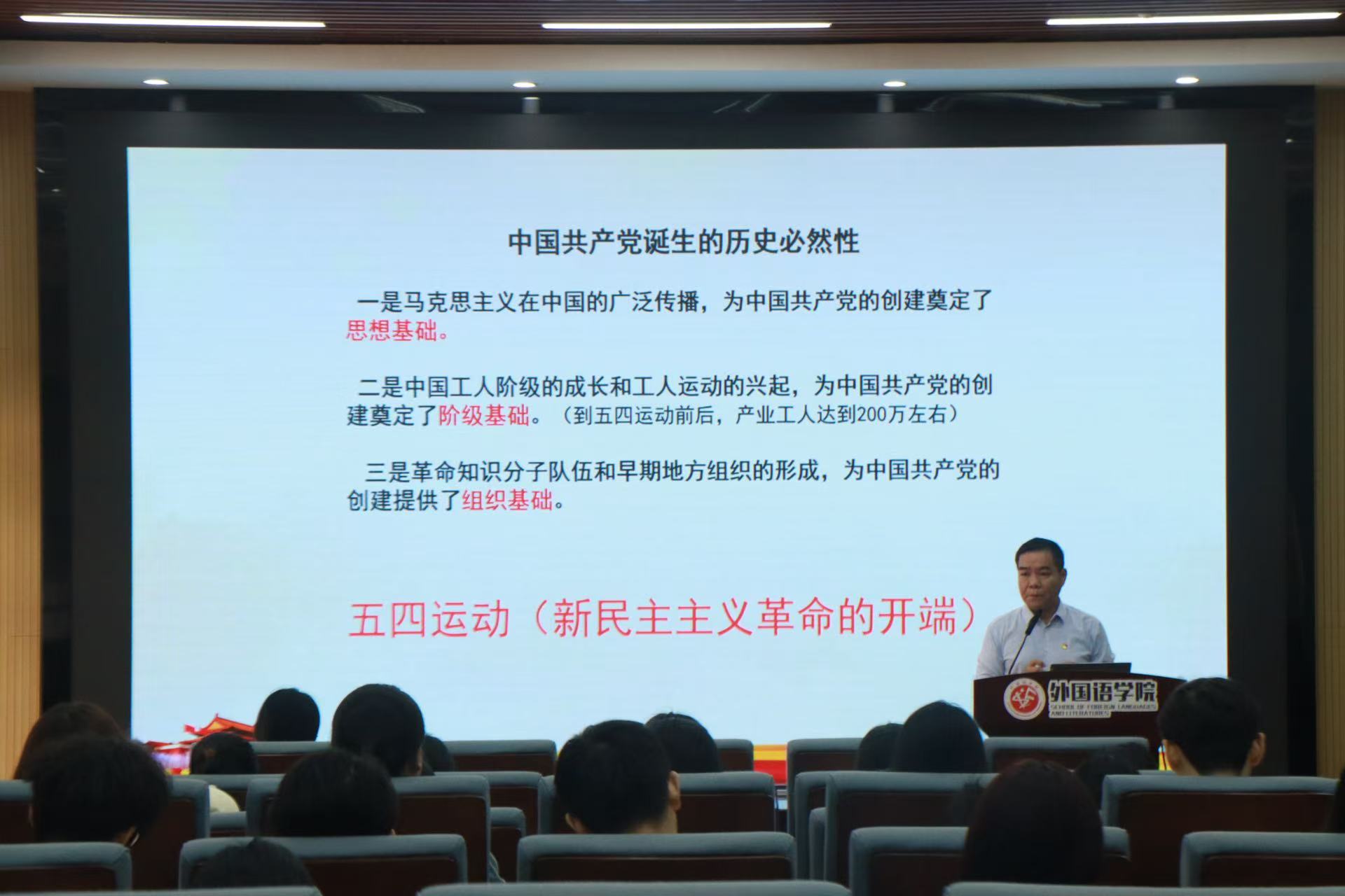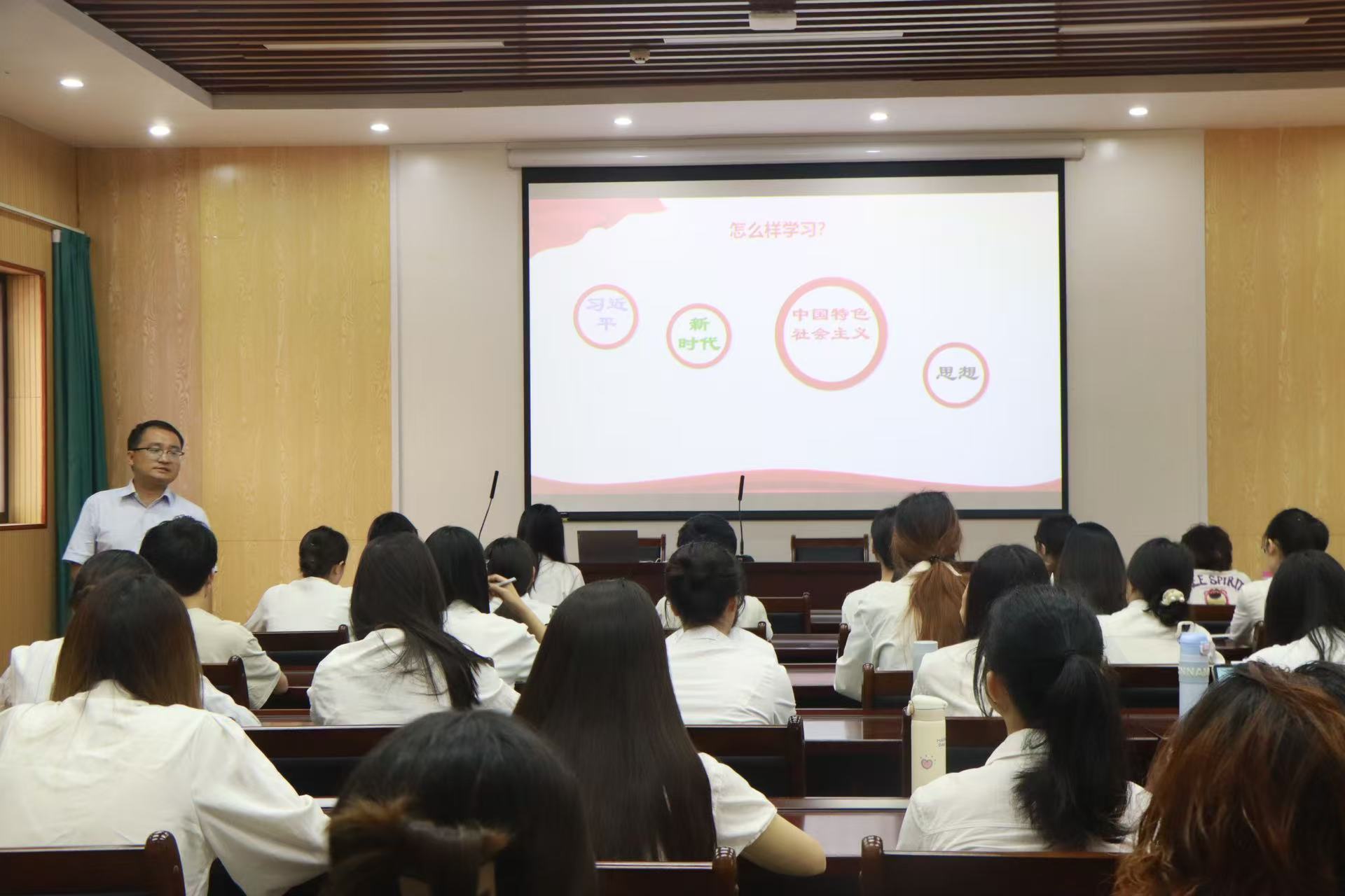 开班仪式结束后,学院党委书记莫柏林以《中国共产党的指导思想》为题,为积极分子培训班全体成员进行理论授课。学院党委副书记程锐以《习近平新时代中国特色社会主义思想导学》为题,为预备党员培训班全体成员进行理论授课。