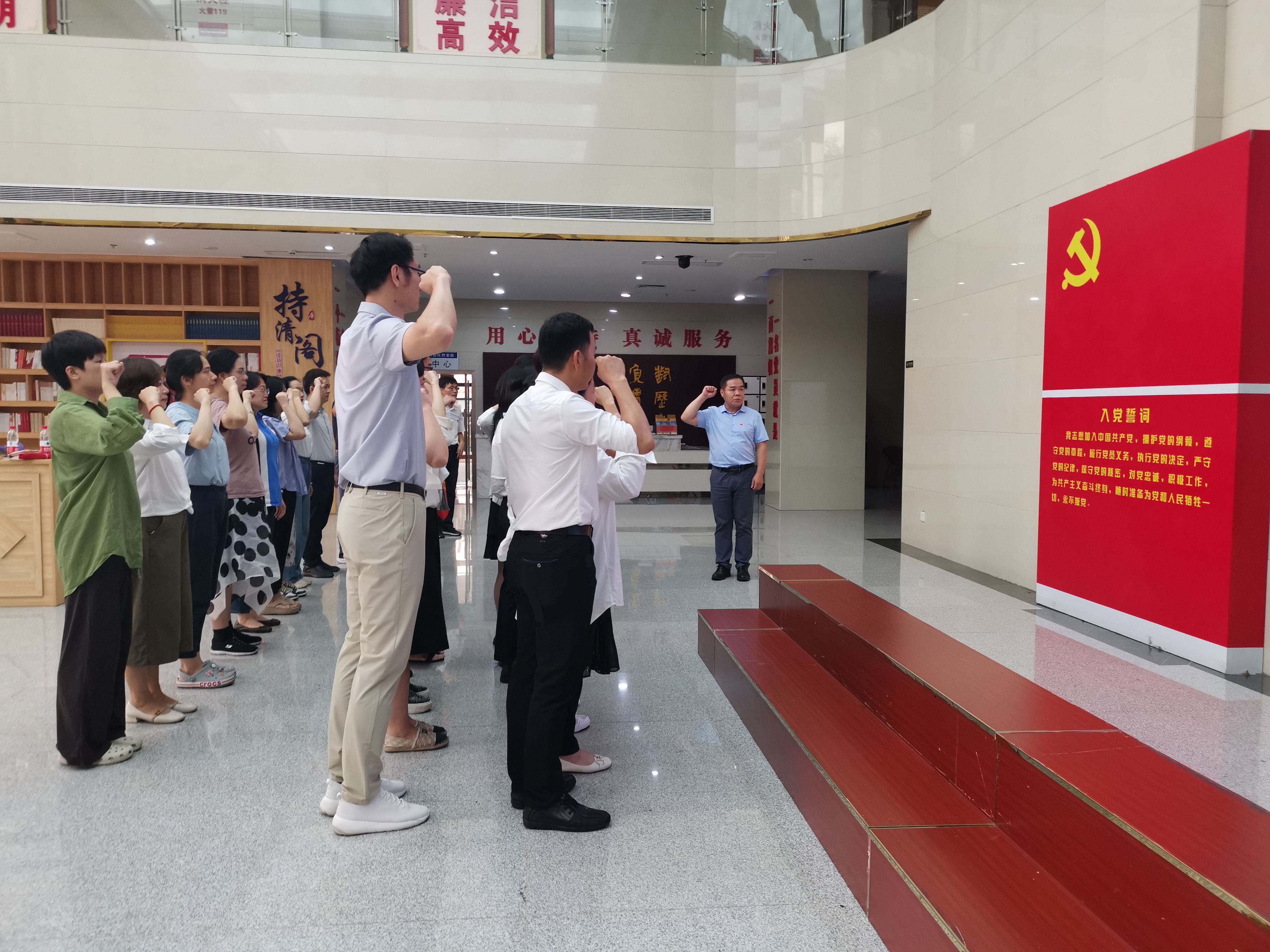 (教职工党员在馆内重温入党誓词)