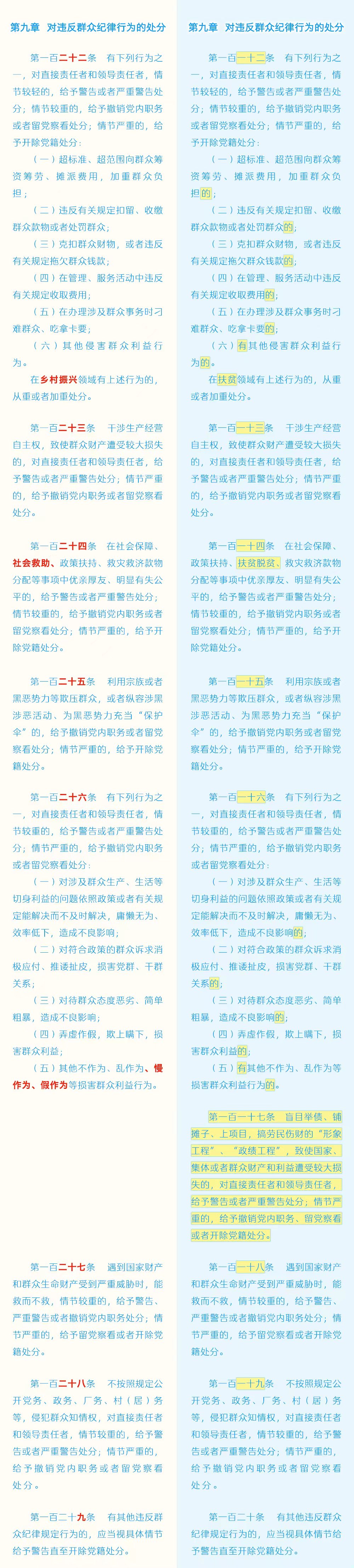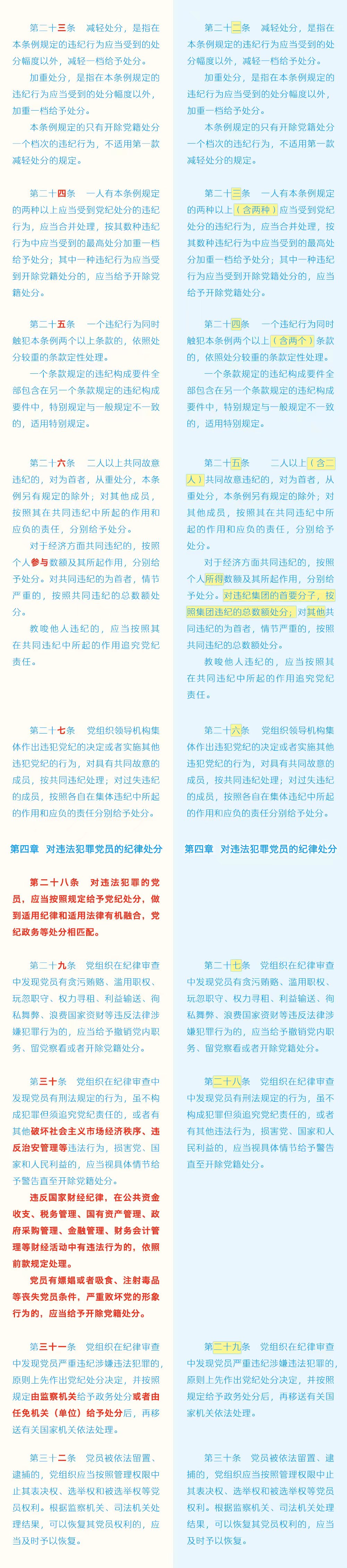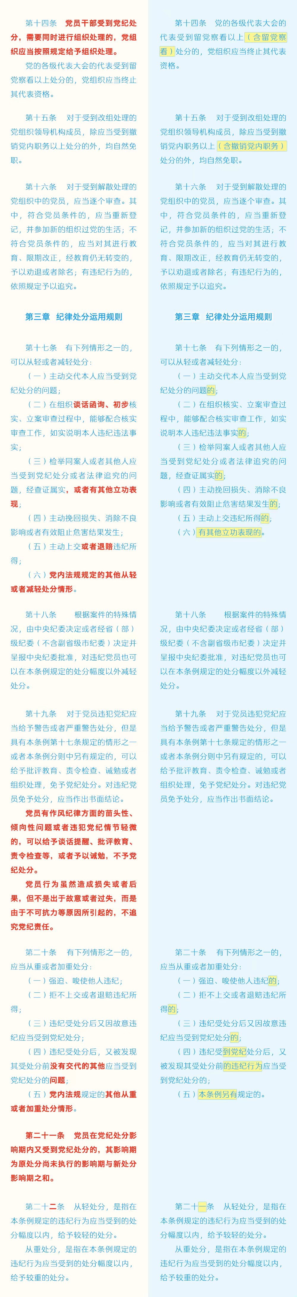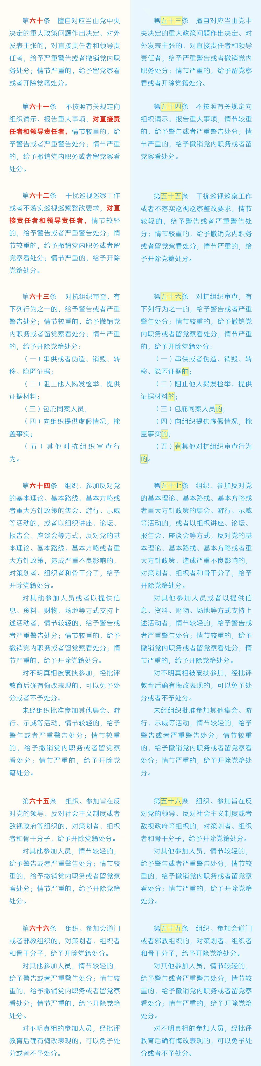 《中国共产党纪律处分条例》修订条文对照表