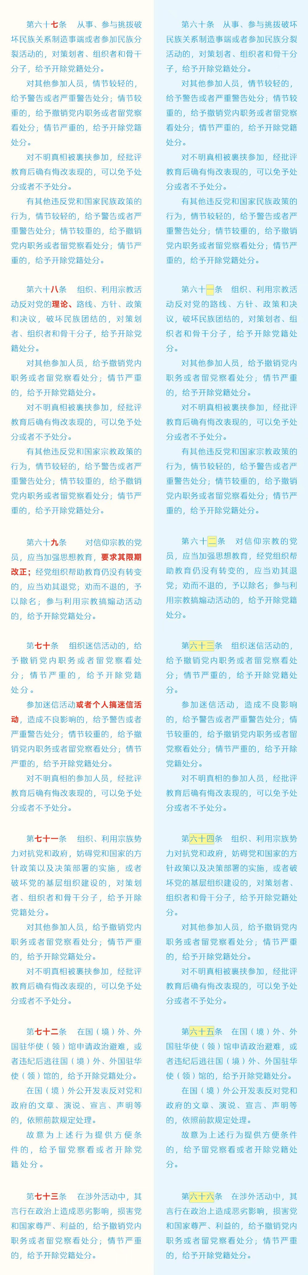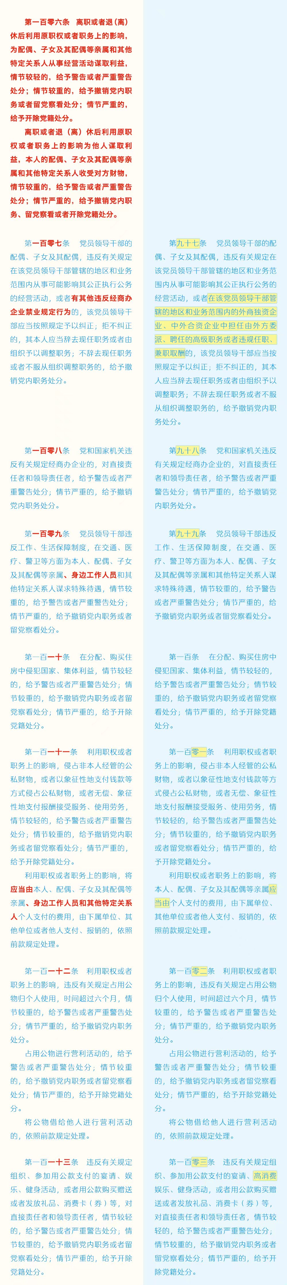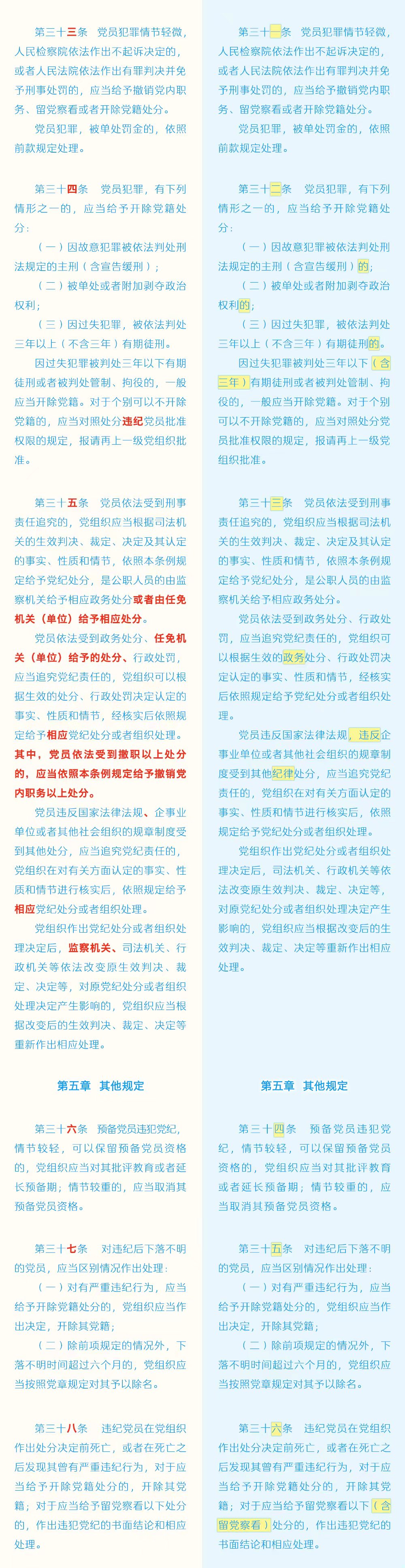 《中国共产党纪律处分条例》修订条文对照表