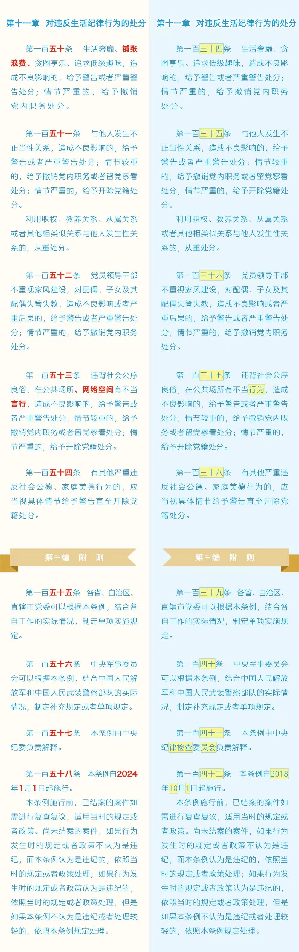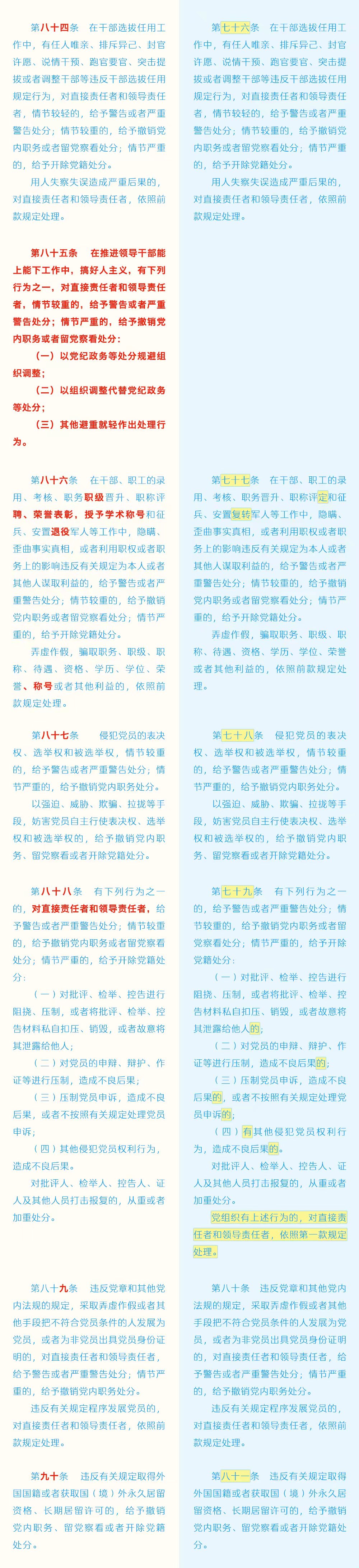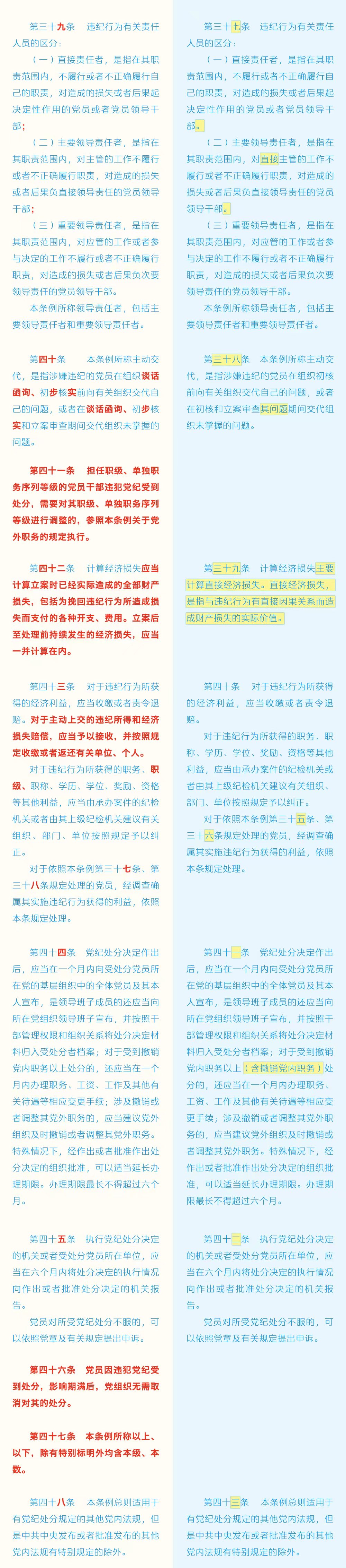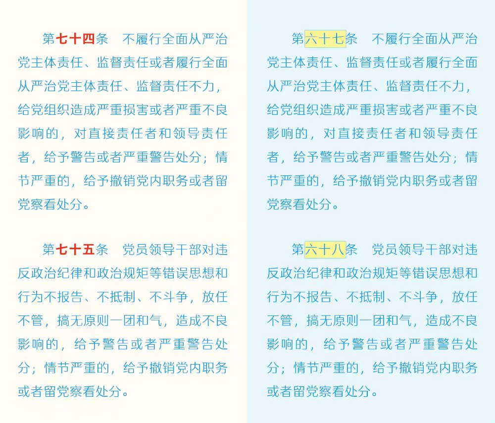 《中国共产党纪律处分条例》修订条文对照表