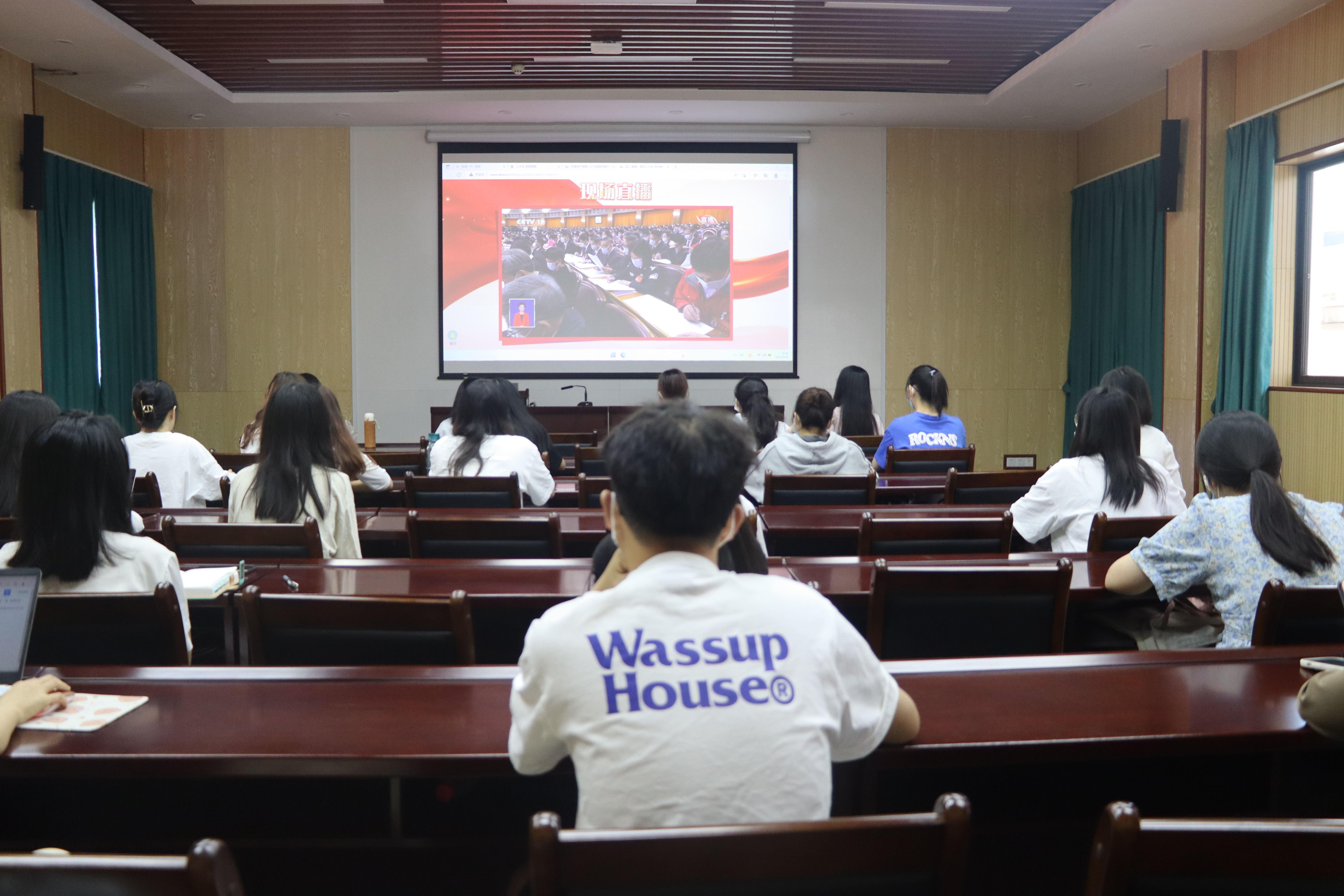 学院领导班子成员、理论学习中心组成员、全体支部委员集中学院融通报告厅,学生代表集中践行报告厅、党员活动室收看直播,其他师生自行收听收看直播。