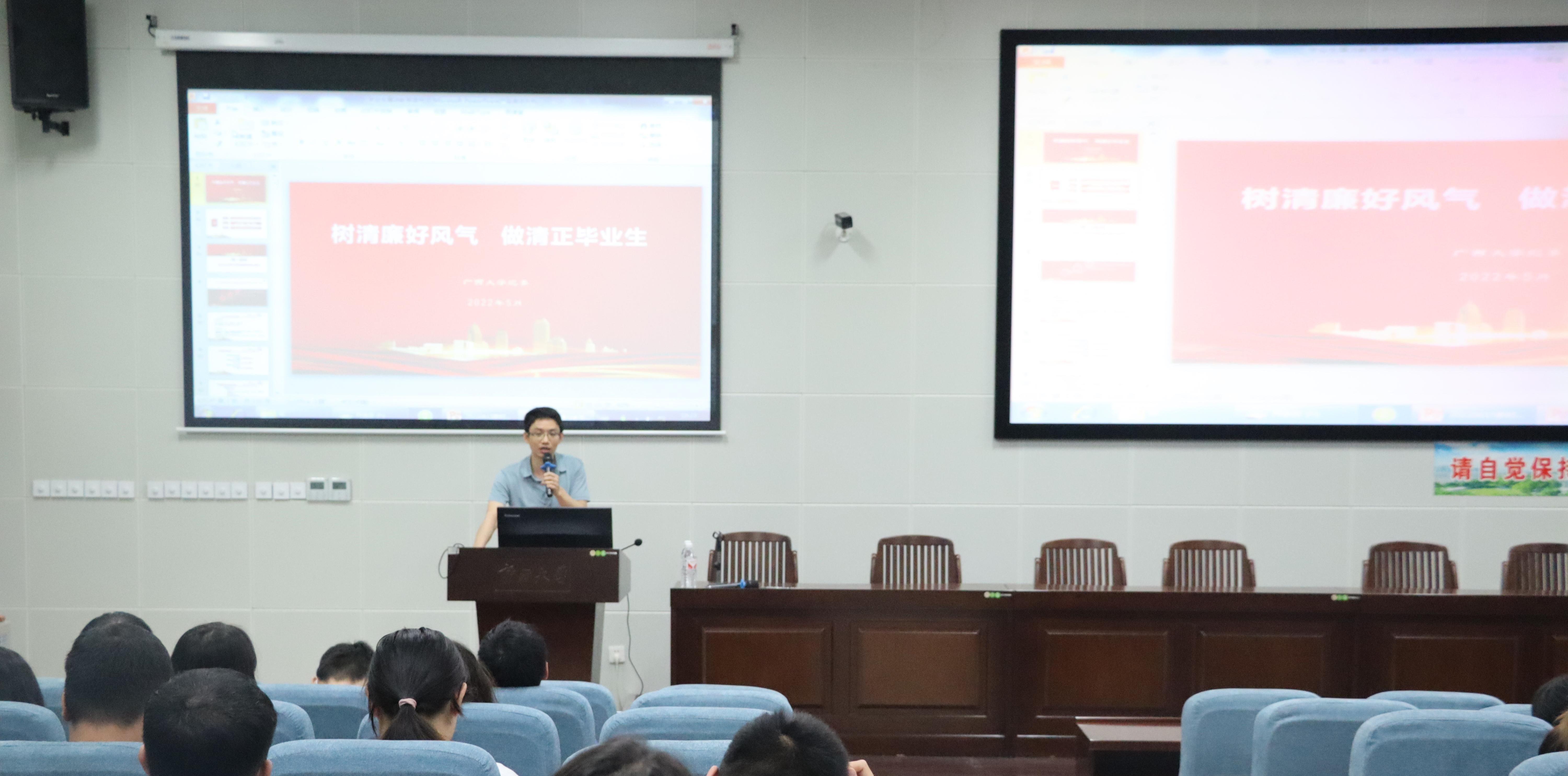 接着,肖克宁副书记就廉洁教育和安全教育问题作了讲话。他指出,毕业生们要树立廉洁理念,提倡廉洁精神,秉持君子之德,高举淡泊之旗,弘扬廉洁之风,并结合李曼溶、张先进等人以公谋私、违法受贿,最终受到法律严惩等事例,给毕业生们敲了一记响亮的警钟,使毕业生们深刻认识到廉洁的重要性。之后,教育毕业生们要掌握校内外安全知识,提高安全意识和防范能力,遵纪守法,提高警惕,防患于未然,保护自身财产安全和人身安全,不但要安全离校,更要在社会中安全生活。